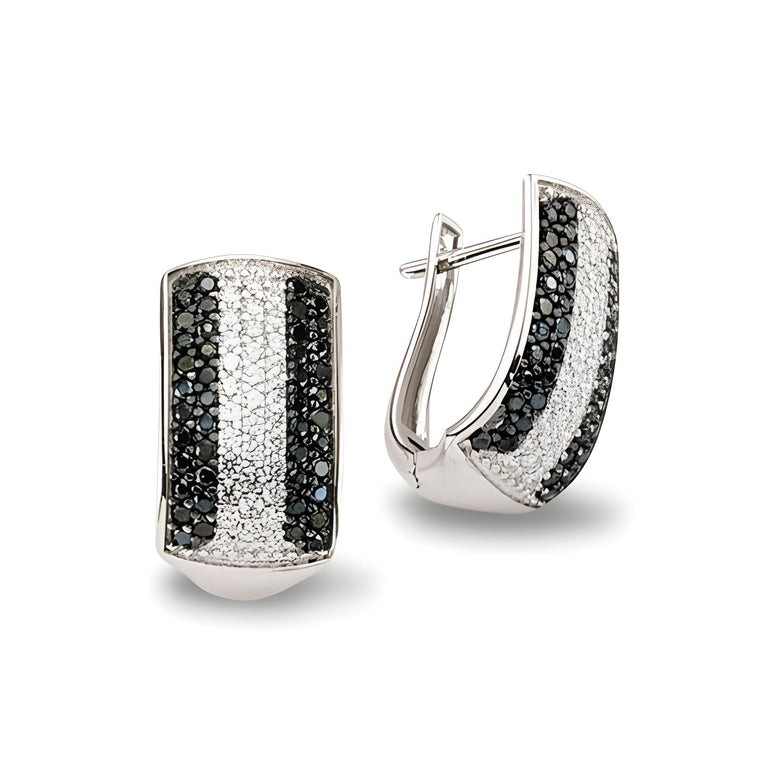 Elegante Creolen aus 925er Silber mit funkelnden schwarzen und weissen Zirkonia-Steinen. Perfekt fuer besondere Anlaesse.
