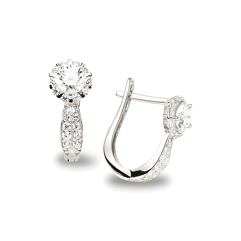Elegante Creolen aus 925er Silber mit funkelnden weissen Zirkonia-Steinen.