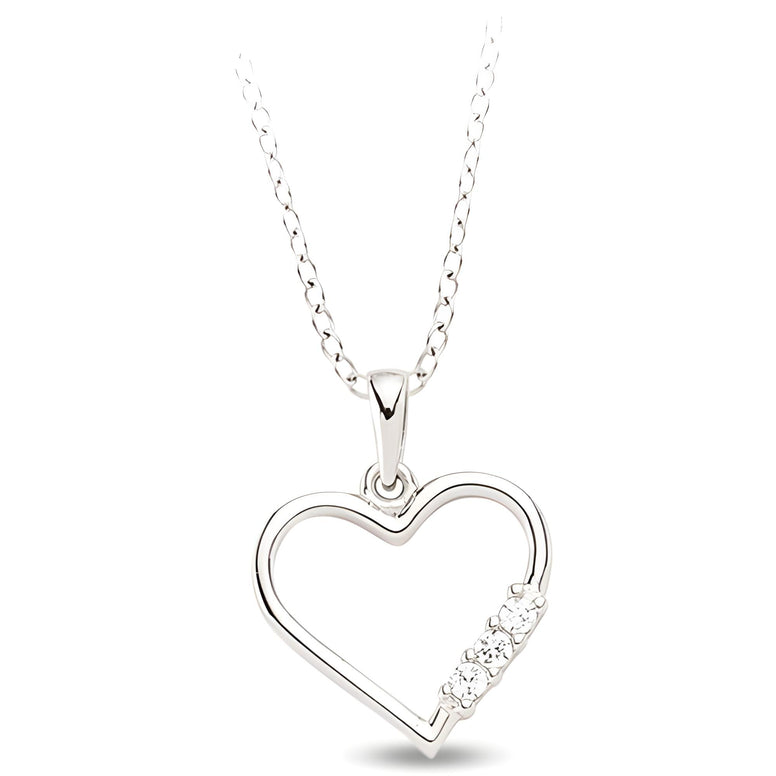 Silberkette mit Zirkonia Herzanhänger – rhodiniertes 925er Sterling Silber mit Zirkonia weiß. Inklusive 45 cm Ankerkette mit Karabinerverschluss.