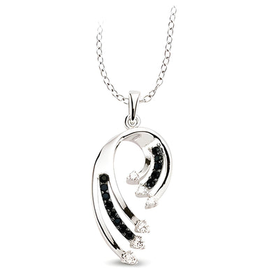 Anhänger und Kette aus Silber Zirkonia schwarz weiß – rhodiniertes 925er Sterling Silber mit Zirkonia weiß und schwarz. Inklusive 45 cm Ankerkette mit Karabinerverschluss.