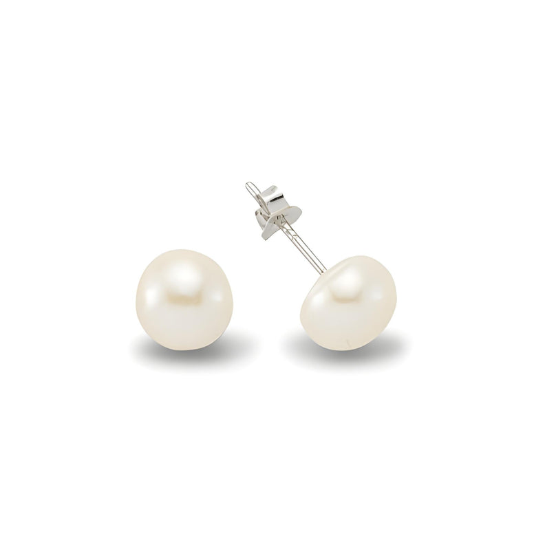 Glänzende Perlenstecker Silber aus Süßwasserzuchtperle