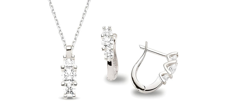 Elegantes Schmuckset aus 925er Silber mit Kette, Anhaenger und Creolen - besetzt mit Zirkonia-Steinen.