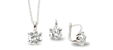 Hochwertiges Schmuckset aus 925er Sterlingsilber mit funkelnden Zirkonia-Steinen. Bestehend aus Kette und Ohrringen.