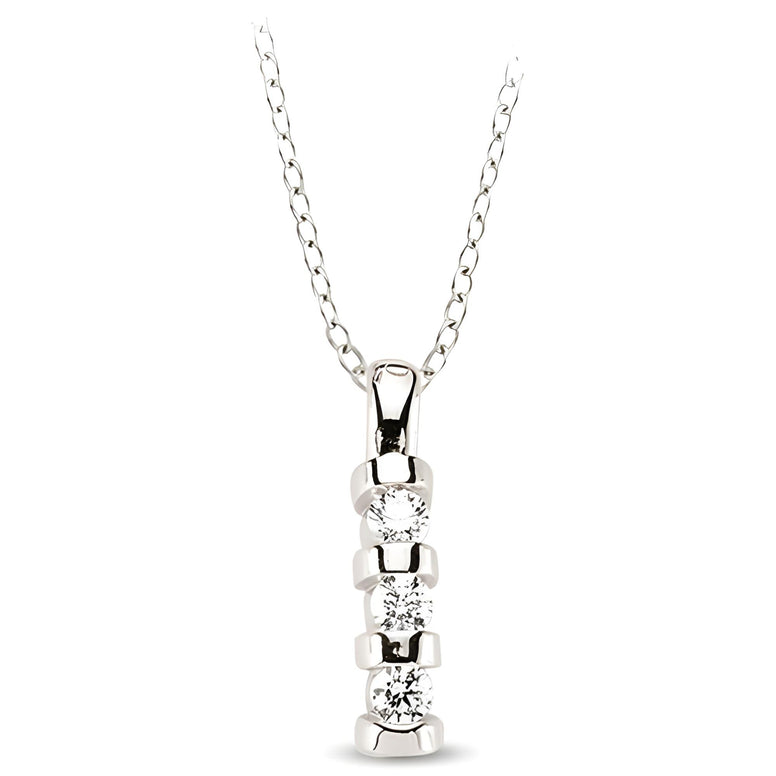 Hochwertige Silber Anhänger Kette aus rhodiniertem 925er Sterlingsilber mit vier vertikal angeordneten Zirkonia-Steinen. Mit 45 cm Länge, Karabinerverschluss und hautfreundlicher Verarbeitung.