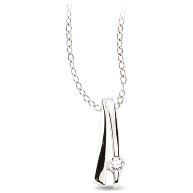 Die Hochwertige Silberkette Anhaenger aus rhodiniertem 925er Sterlingsilber ueberzeugt mit zwei parallelen Silberstreifen und einem funkelnden Zirkonia-Stein. Mit 45 cm Laenge, Karabinerverschluss und hautfreundlicher Verarbeitung ist sie ein eleganter Begleiter fuer jeden Anlass.