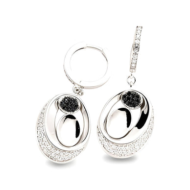 Elegante Ohrhaenger aus 925er Silber mit funkelnden Zirkonia-Steinen in schwarz und weiss. Perfekt fuer besondere Anlaesse.