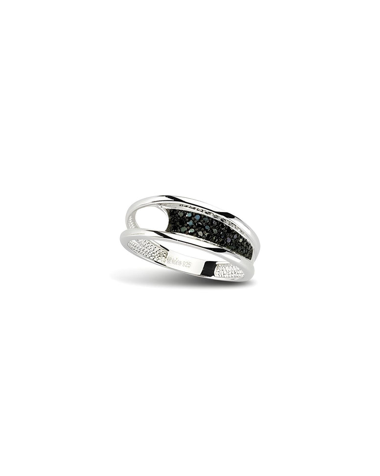 Eleganter Ring aus 925er Silber mit funkelnden schwarzen Zirkonia-Steinen. Zeitlos schoen.