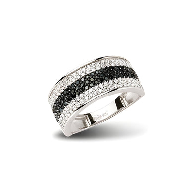 Eleganter Ring aus 925er Silber mit funkelnden schwarzen und weissen Zirkonia-Steinen. Zeitlos schoen und perfekt fuer jeden Anlass.