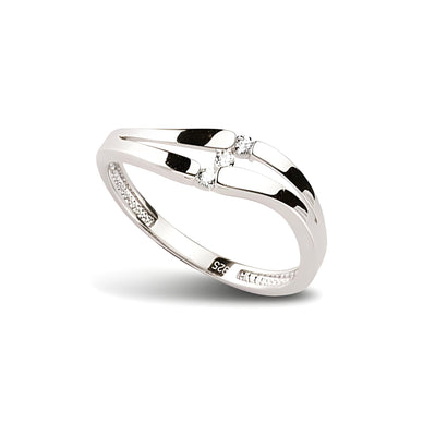 Eleganter Ring aus 925er Silber mit funkelnden weissen Zirkonia-Steinen in geschwungenem Design.