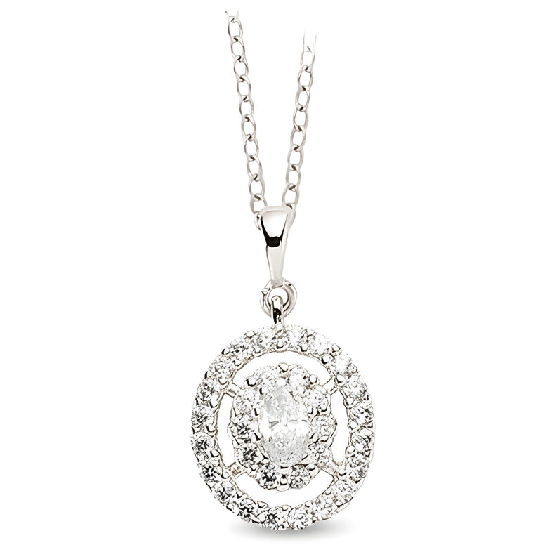 Runderanhänger und Kette aus Silber Zirkonia weiß. Eleganter Silberschmuck aus 925er Sterling Silber, rhodiniert für dauerhaften Glanz. Mit funkelnden Zirkonia weiß Steinen besetzt. Inklusive 45 cm Ankerkette mit Karabinerverschluss.