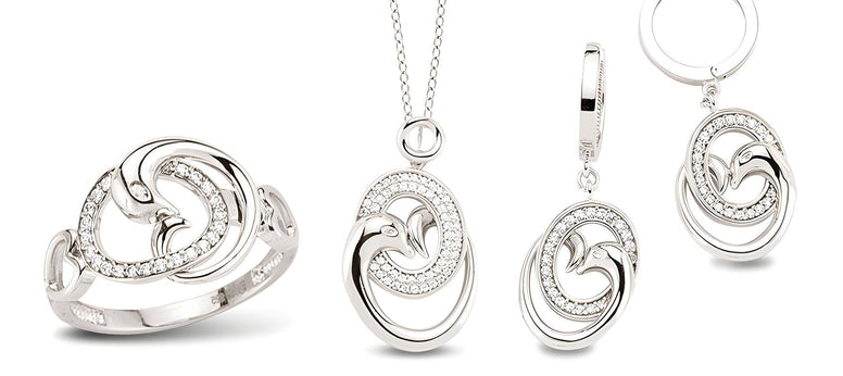 Elegantes Schmuckset aus 925er Silber mit Kette, Ring und Ohrringen. Besetzt mit funkelnden Zirkonia-Steinen.