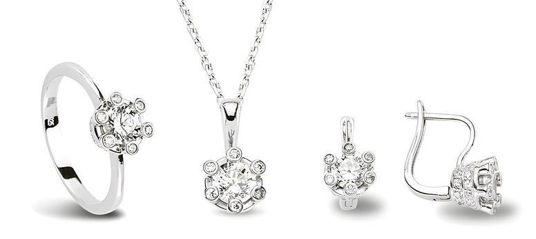 Elegantes Schmuckset aus 925er Silber mit Kette, Ring und Ohrringen.
