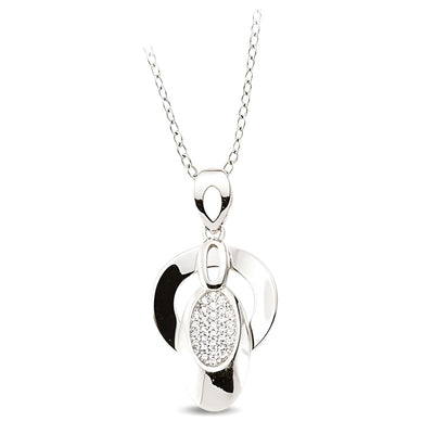 Sterling Silver Anhaenger Zirkonia mit drei ineinander liegenden ovalen Formen, mittig besetzt mit weissen Zirkonia-Steinen. Gefertigt aus rhodiniertem 925er Silber, hypoallergen und langlebig.