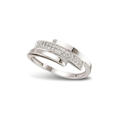 Ein stilvoller 925 Silberring Zirkonia weiß vereint modernes Design mit zeitloser Eleganz. Dieser Ring aus hochwertigem Sterling Silber zeigt ein raffiniertes, offenes Design, das durch zwei versetzte Bahnen charakterisiert wird. Während eine Bahn glatt poliert bleibt und einen edlen Glanz verströmt, ist die andere mit funkelnden weißen Zirkonia besetzt und setzt leuchtende Akzente.
