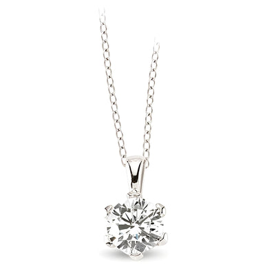 Zirkonia Solitäranhänger Silber mit rundem Zirkonia-Stein in Krappenfassung und zarter Kette. Hautfreundlich, elegant und ideal als Geschenk.